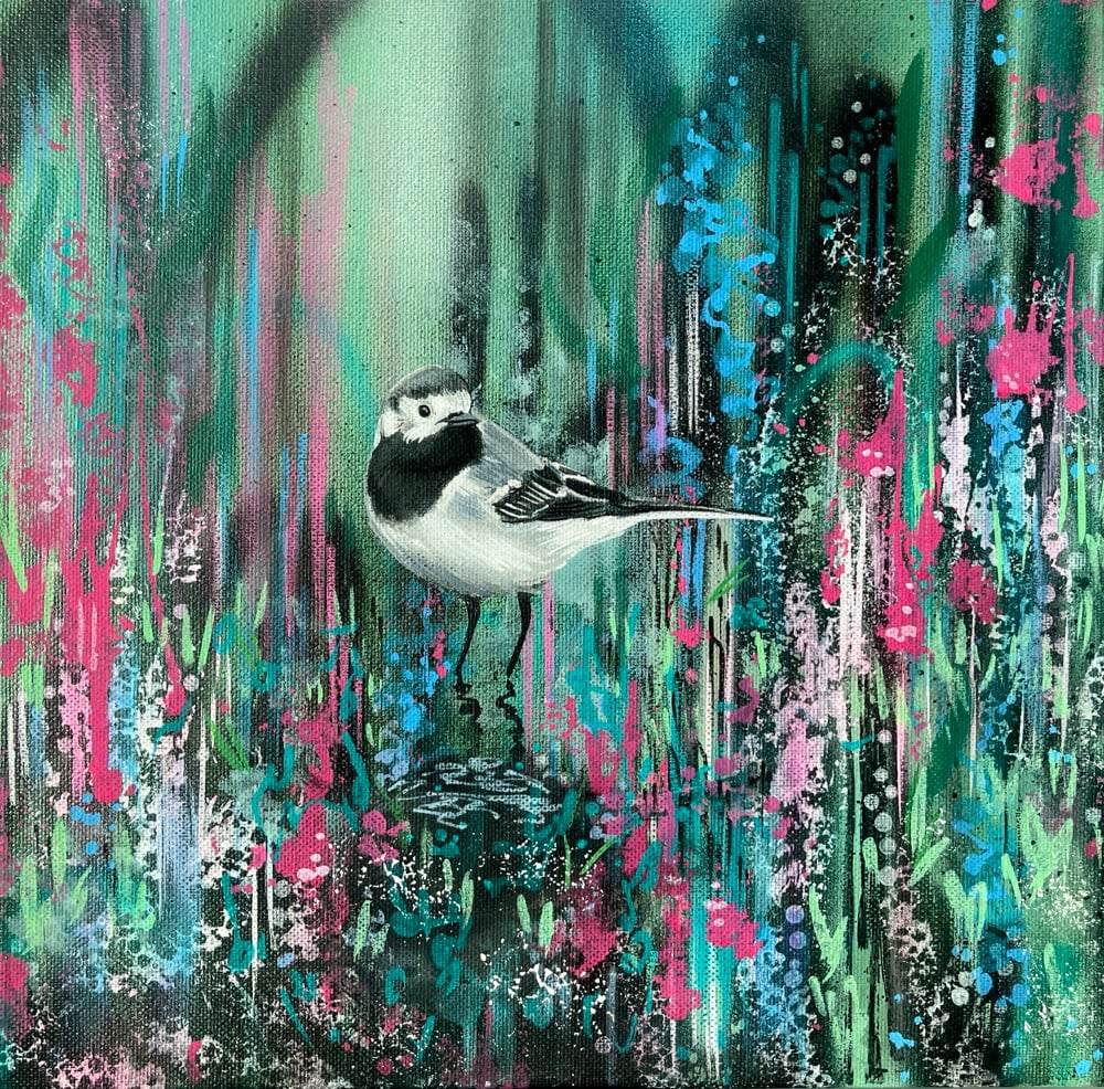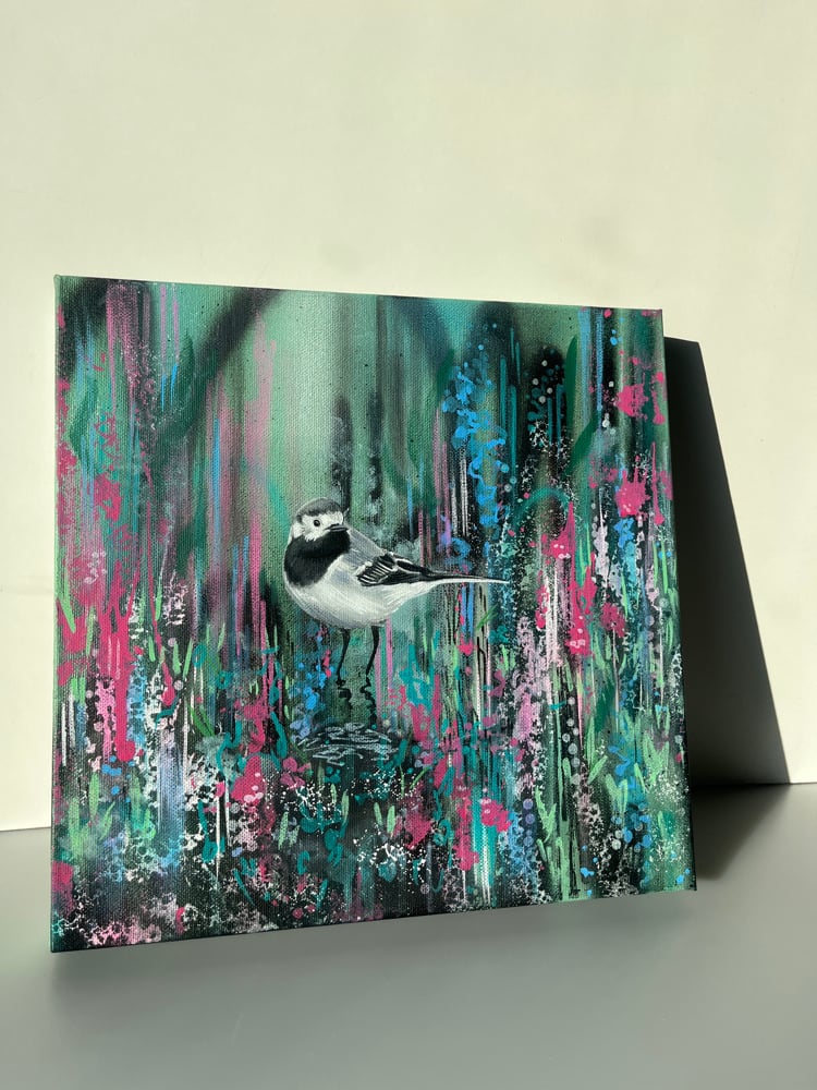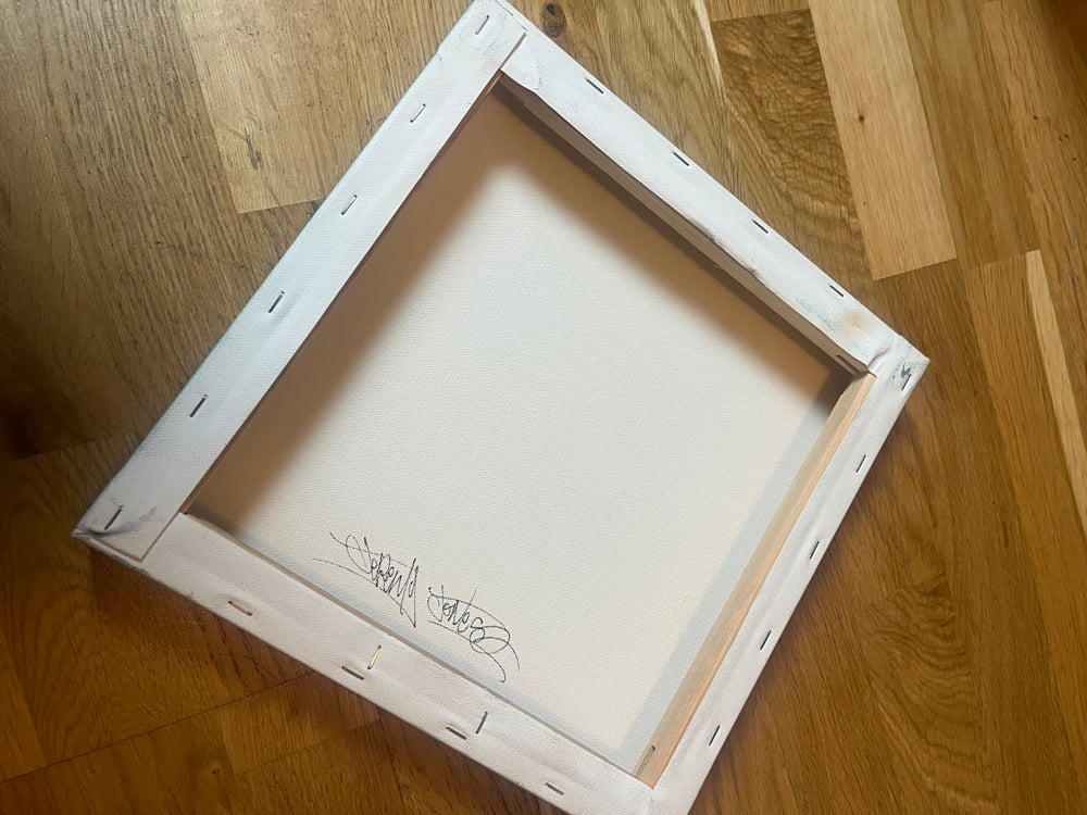 Hand painted acrylic on 30 x 30 x 4cm canvas. Signed on the back