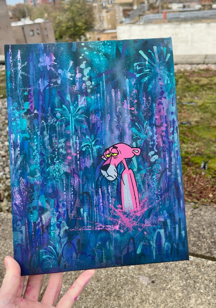 Hand painted acrylic on 23 x 30.5 x 1cm rigid back canvas. Signed on the back