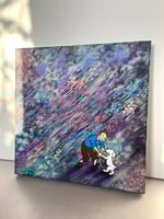 Spray paint and acrylic on 40 x 40 x 4cm canvas. Signed on the back